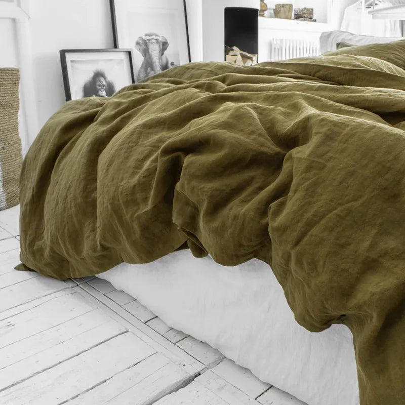Linen is a completely natural and renewable resource – perhaps the most ecologically sound fabric of all. it is totally biodegradable and recyclable. All our linen bedding is made of the highest quality 100% natural French Flax Linen fabric. We love the feel and look of natural pure linen - it is true luxury. Our linen bedding is made of 100% natural linen and finished with a stone wash, leaving a gorgeous relaxed look that also feels soft on the skin. Pure linen duvet cover and linen sheet will keep you warm in the winter and cool in the summer. There is no need for a bedspread if you have our beautiful natural fabric linen duvet cover and sheet.